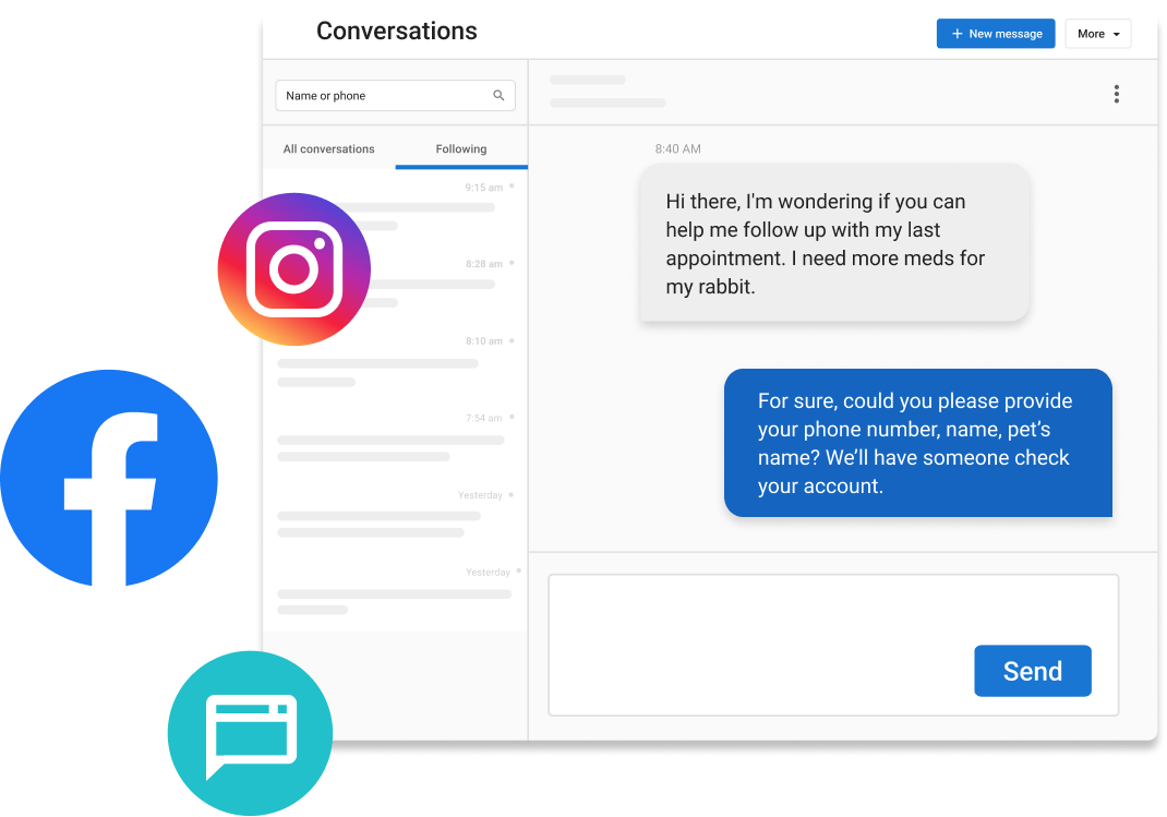 Managing phone calls, texts, Facebook messages, Instagram DMs, WhatsApp chats, and emails from different platforms is chaos. Conversations AI brings everything into one unified inbox, so you and your team can see the full conversation history with each customer—no matter which channel they used.